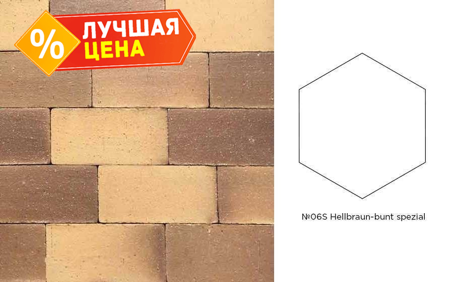 Клинкерная брусчатка Muhr №06S Hellbraun-bunt Spezial, гексагон 200x20 мм